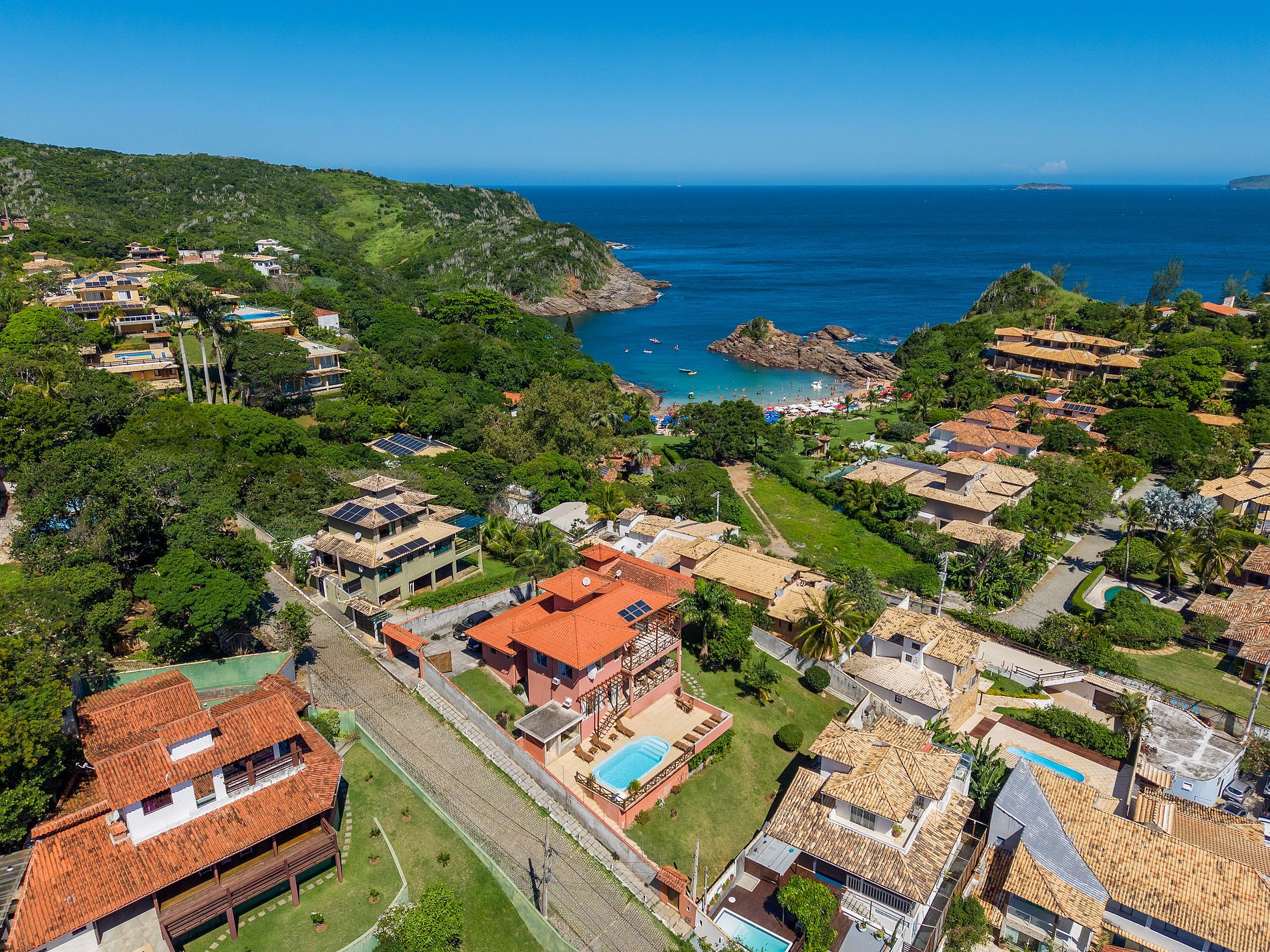 A casa está localizada no bairro de Geribá, em Búzios, com acesso fácil por vias asfaltadas. O local é bem sinalizado e de simples chegada tanto para quem vem de carro quanto de transporte por aplicativo.