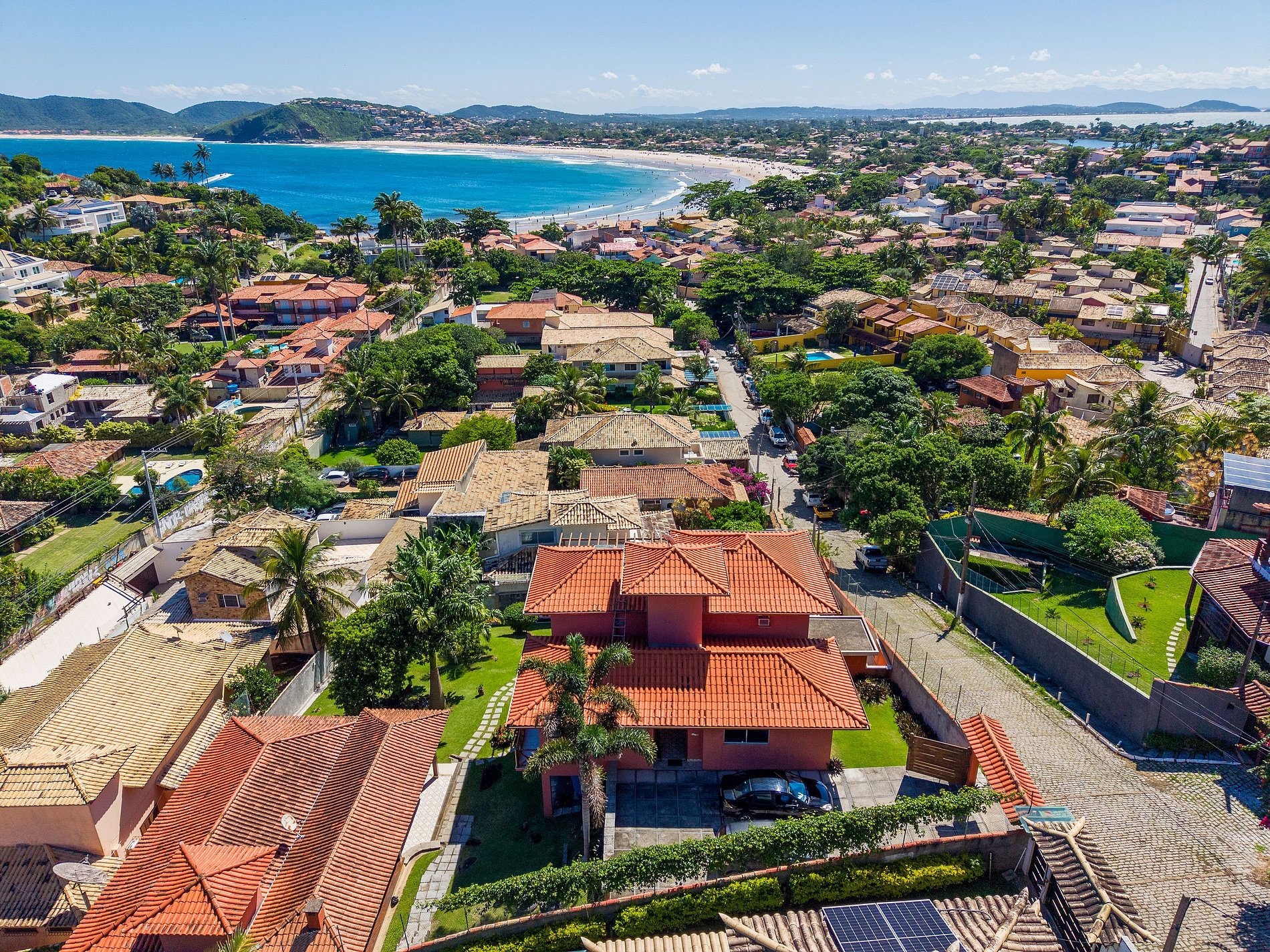 Imagine acordar em uma casa ampla, arejada e banhada pela luz natural que entra suavemente pelas janelas. Aqui, a vista panorâmica de Geribá acompanha você em cada momento — da primeira xícara de café ao pôr do sol que colore o céu no fim do dia. A apenas 450 metros da praia, este refúgio reúne beleza, conforto e a verdadeira essência de Búzios.