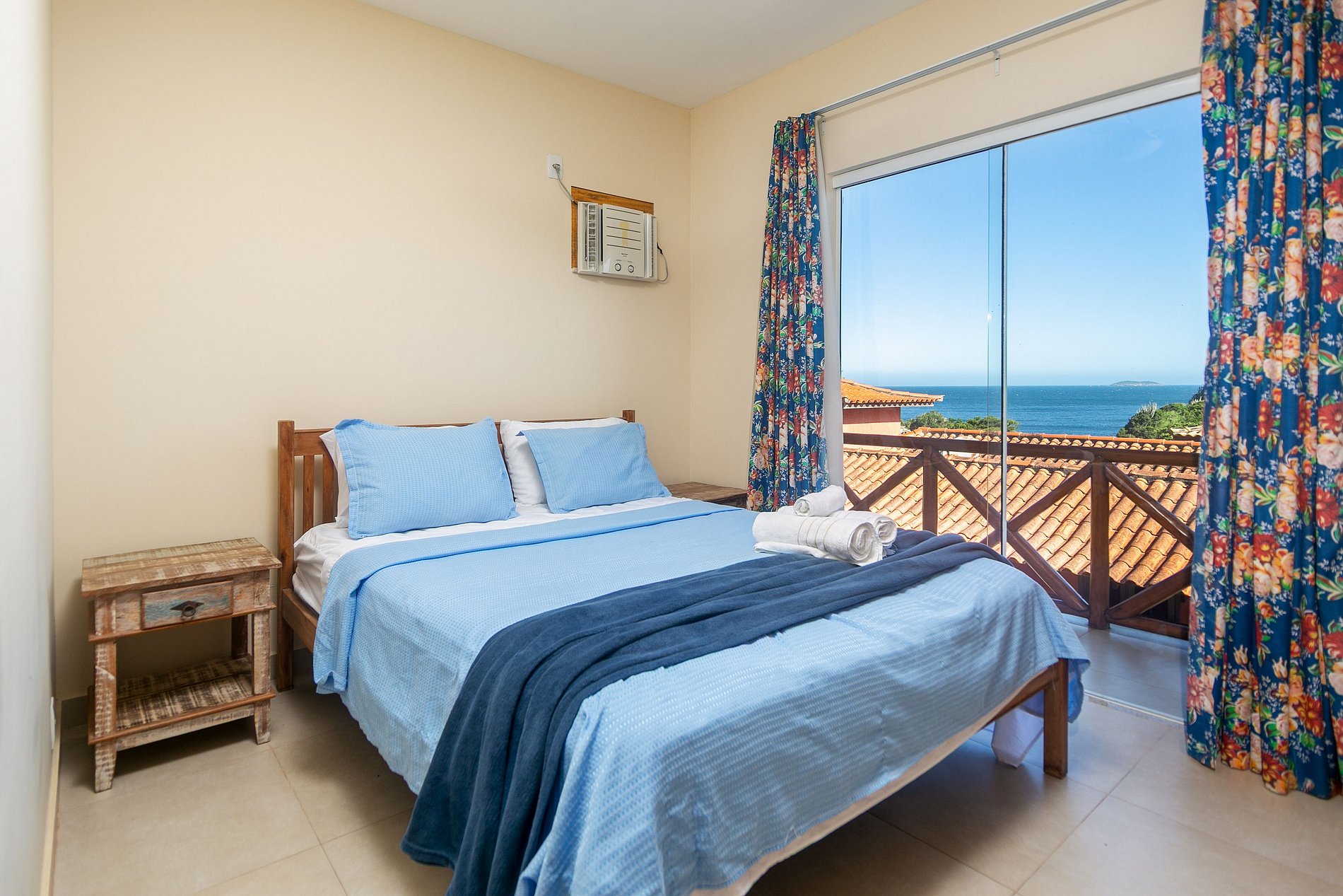 Com uma camas queen, ar-condicionado, ventilador de teto e vista para o mar — perfeito para quem gosta de espaço e conforto.